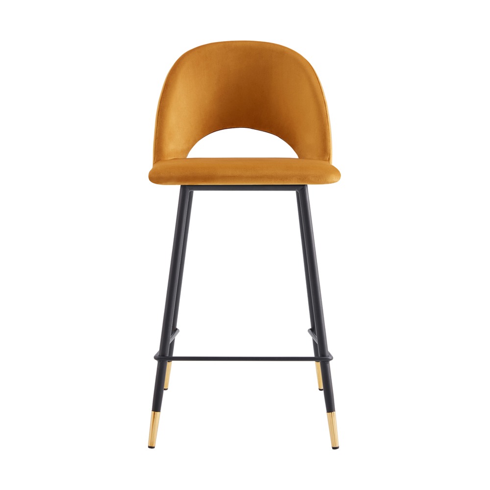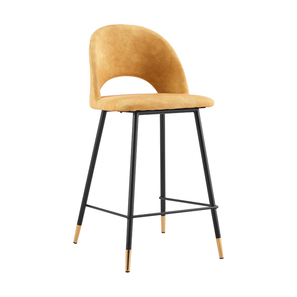 כסא בר מעוצב, ריפוד דמוי עור או קטיפה , שלד מתכת, קצה רגל זהב