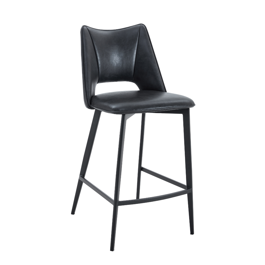 כסא בר 66 ס”מ, מושב ריפוד דמוי עור, שלד מתכת 4-רגליים