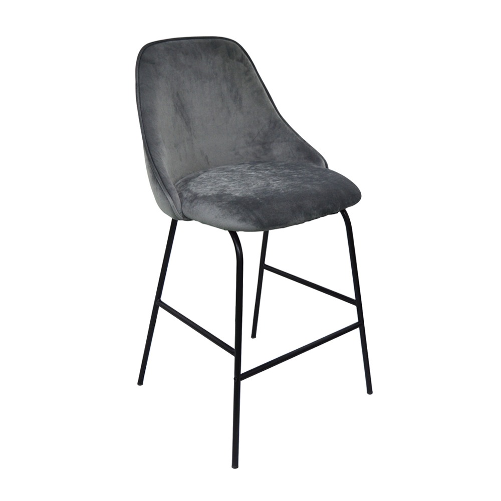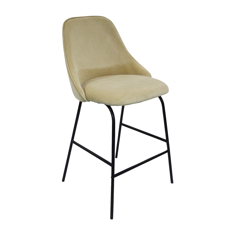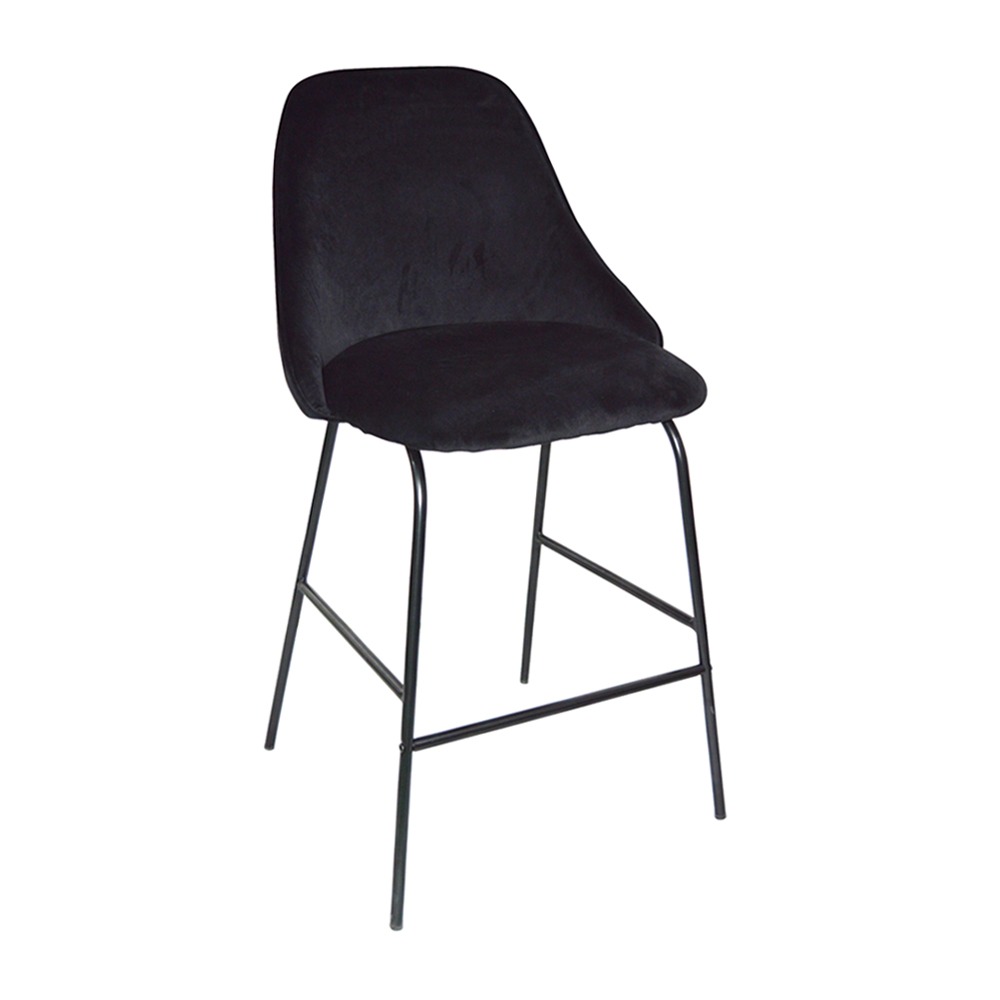 כסא בר, ריפוד בד קטיפה, שלד מתכת 4 רגליים