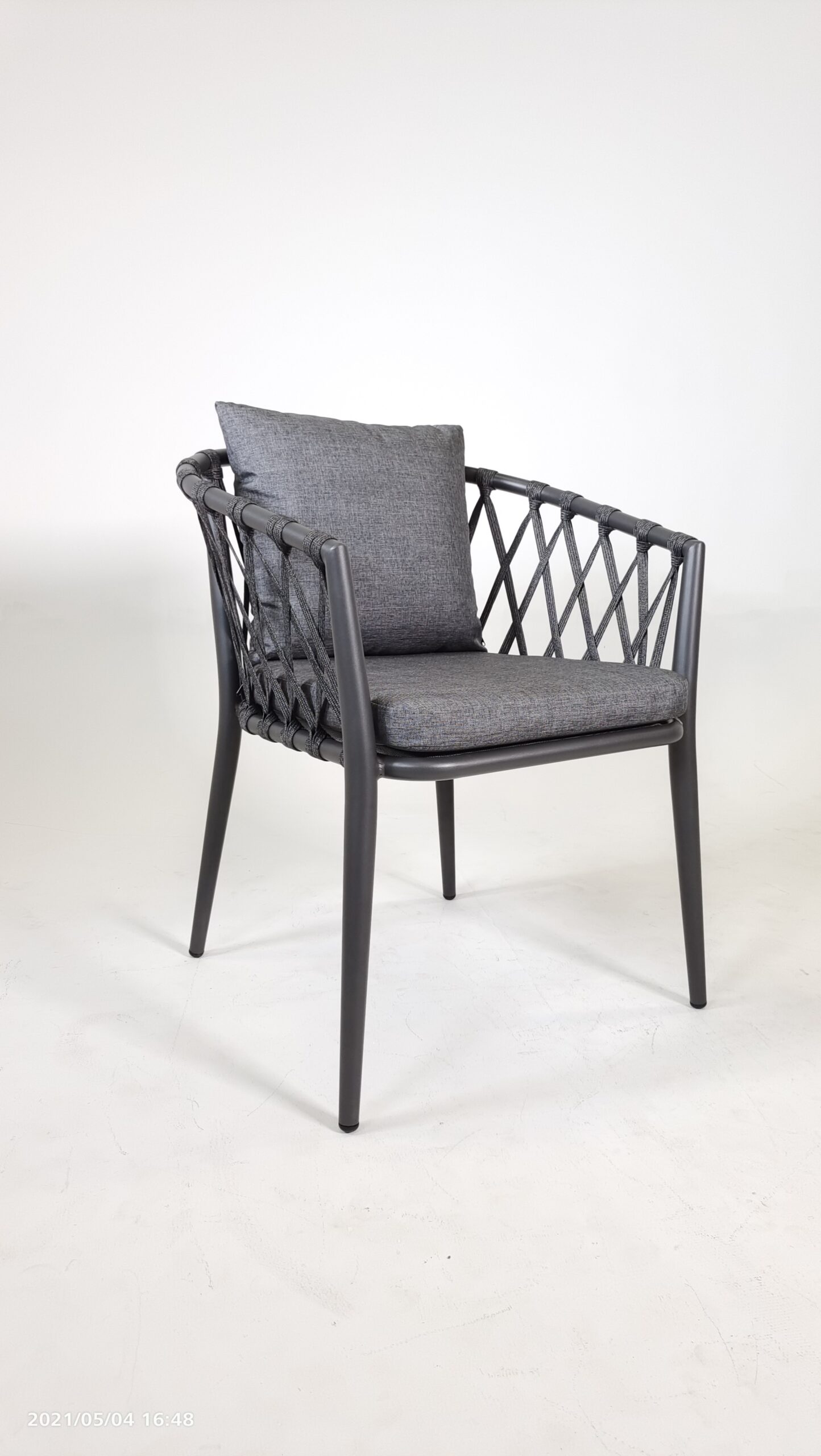 כסא גן - ריפוד אפור כהה - גב קליעה שחור